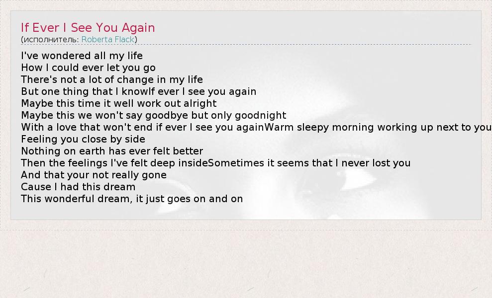 А как ты думаешь, о чем песня "If Ever I See You Again" ?