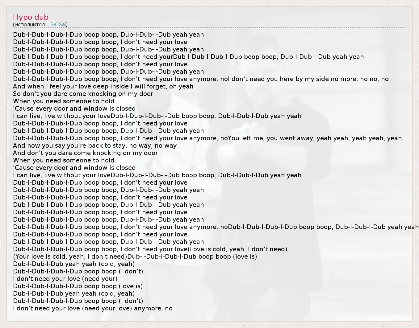 Dub-I-Dub-I-Dub-I-Dub boop boop, I don't need your love anymore, noI don't need you here by my side no more, no no, no
