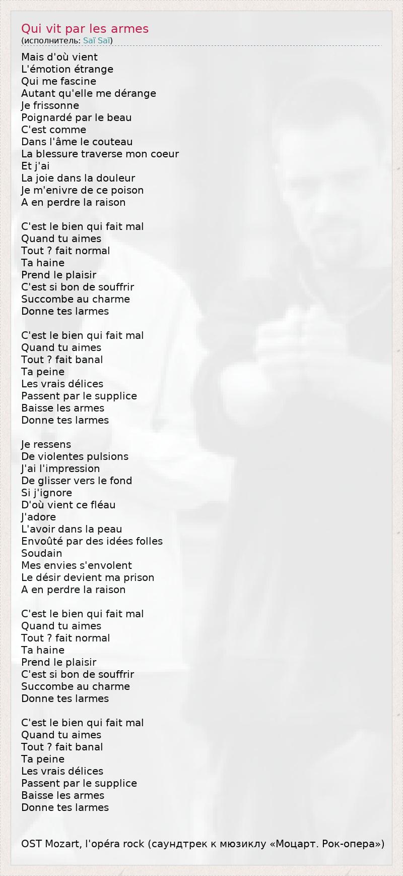ГлавнаяИсполнителиSaï SaïQui vit par les armes