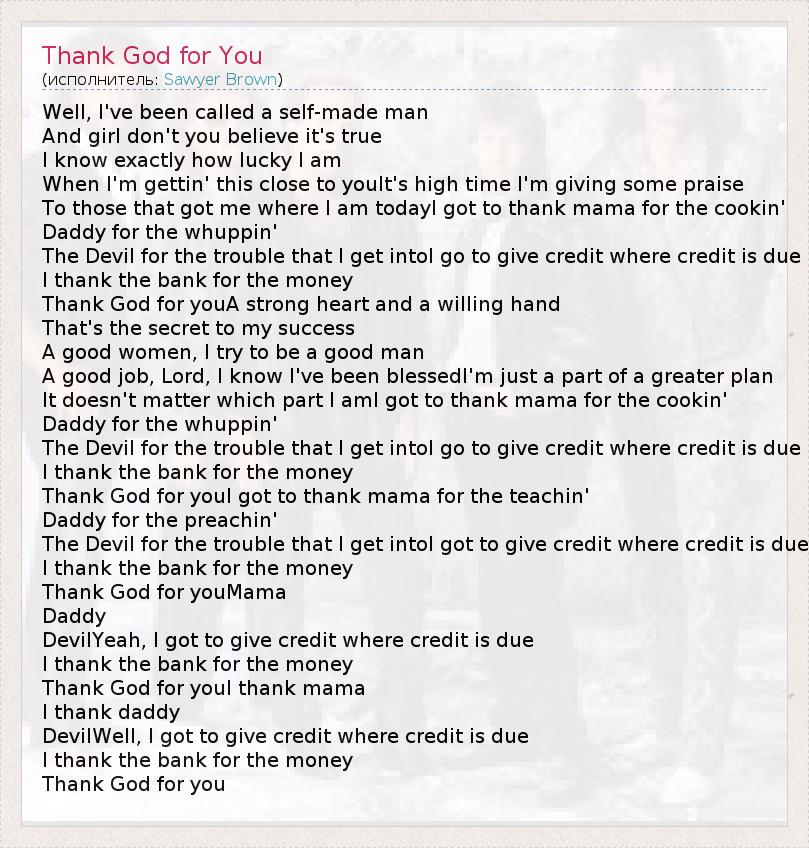 А как ты думаешь, о чем песня "Thank God for You" ?