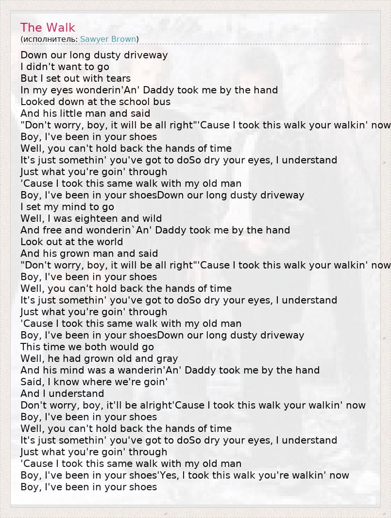 "Don't worry, boy, it will be all right"'Cause I took this walk your walkin' now