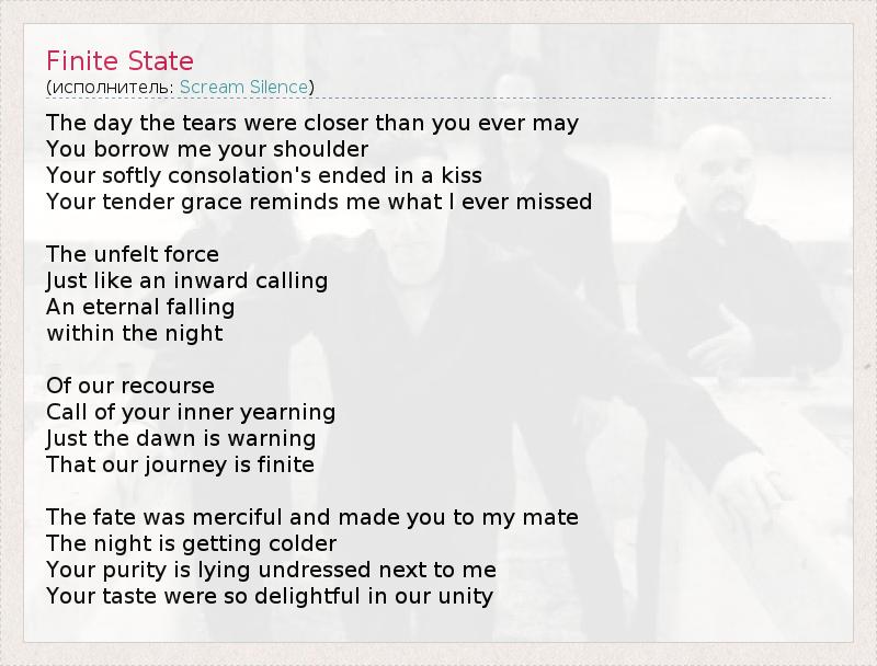 А как ты думаешь, о чем песня "Finite State" ?