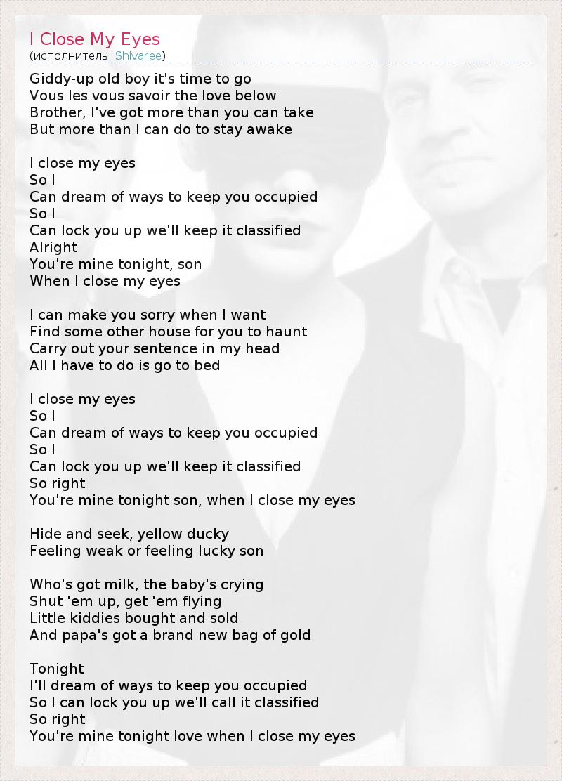 А как ты думаешь, о чем песня "I Close My Eyes" ?