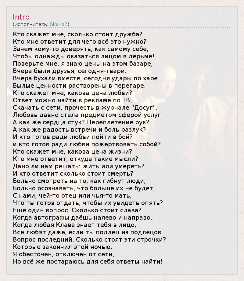 Это интересно:Группа «SkaЧай» была основана 10 ноября 2007 года в Екатеринбурге. За это время группа стала самым знаковым Ska - Reggae коллективом Екатеринбурга.Группа «SkaЧай» выступала на многих фестивалях Урала, Москвы, и в клубах по всей России. А также с многими именитыми бандами России и Мира!Такими как SKATALITES, DISTEMPER, ZION TRAIN, SPITFIRE, ЭЛИЗИУМ, ЛЯПИС-ТРУБЕЦКОЙ, MALE FACTORS, ДАБАЦ, DUB DIVISION, КАНИКУЛЫ БОНИФАЦИЯ…... продолжение