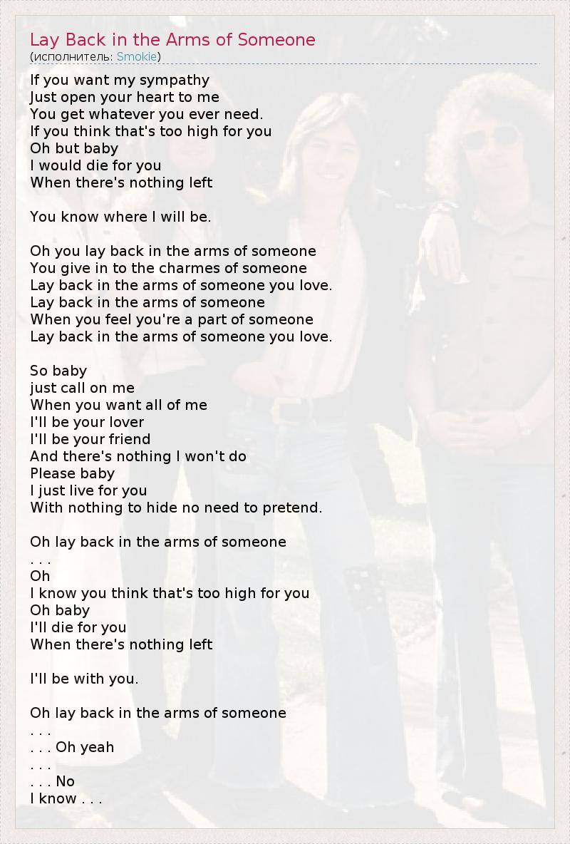 Oh lay back in the arms of someone
