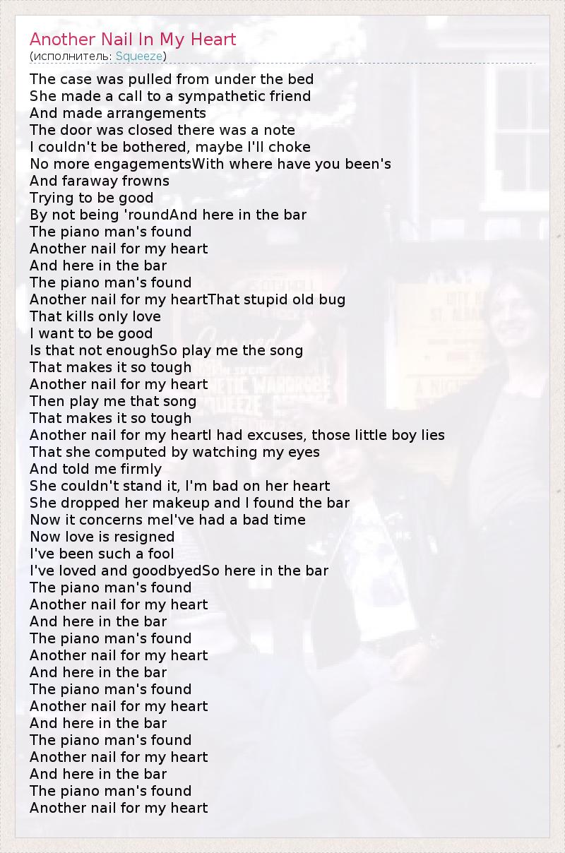 А как ты думаешь, о чем песня "Another Nail In My Heart" ?