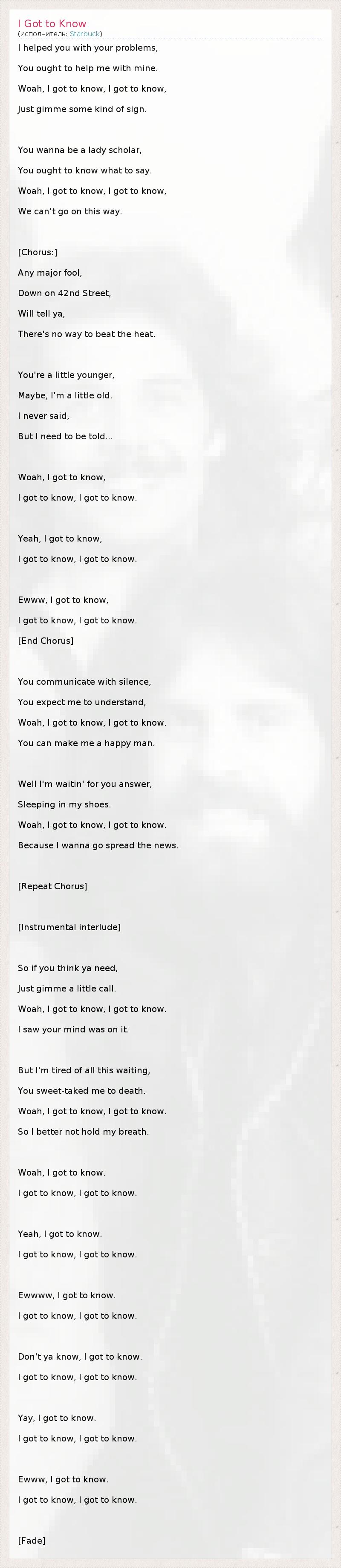 А как ты думаешь, о чем песня "I Got to Know" ?