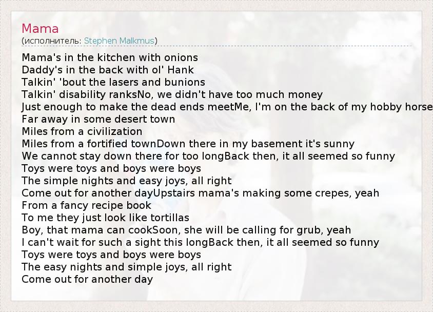 А как ты думаешь, о чем песня "Mama" ?