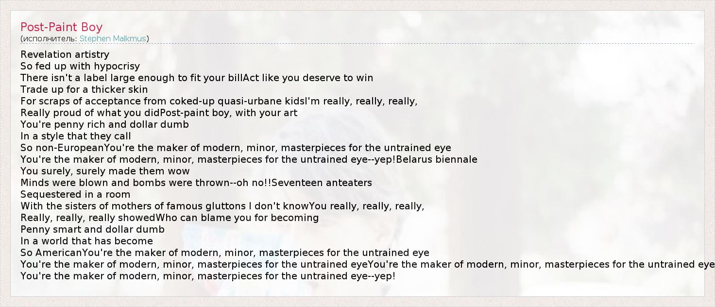 А как ты думаешь, о чем песня "Post-Paint Boy" ?