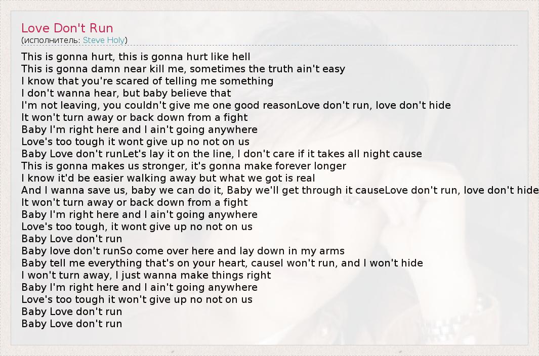 А как ты думаешь, о чем песня "Love Don't Run" ?