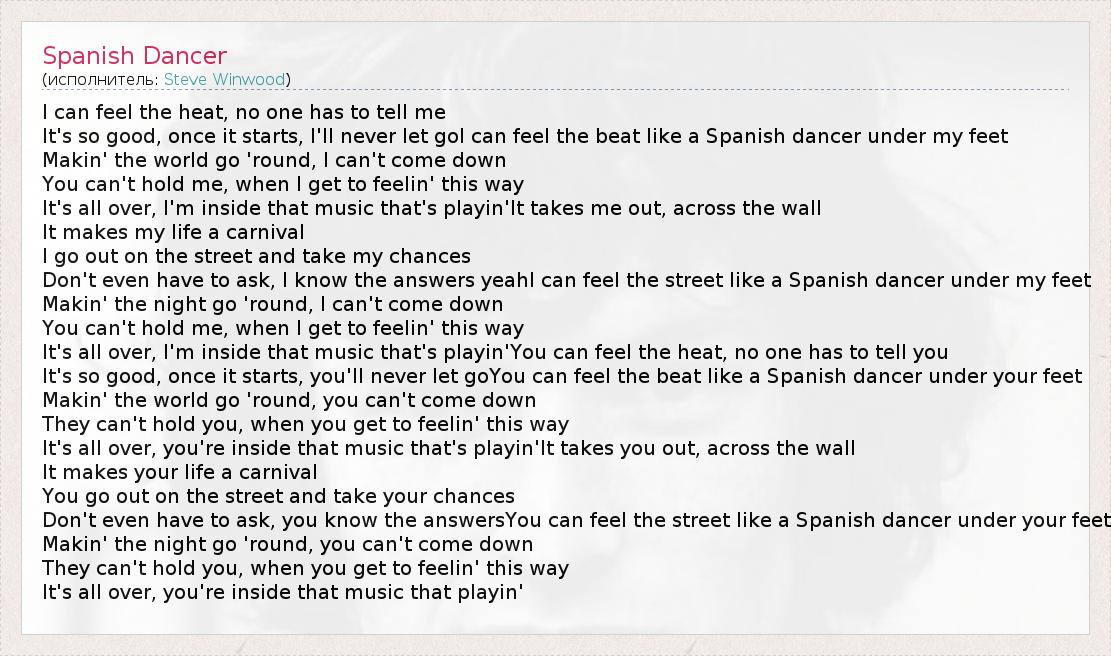 А как ты думаешь, о чем песня "Spanish Dancer" ?
