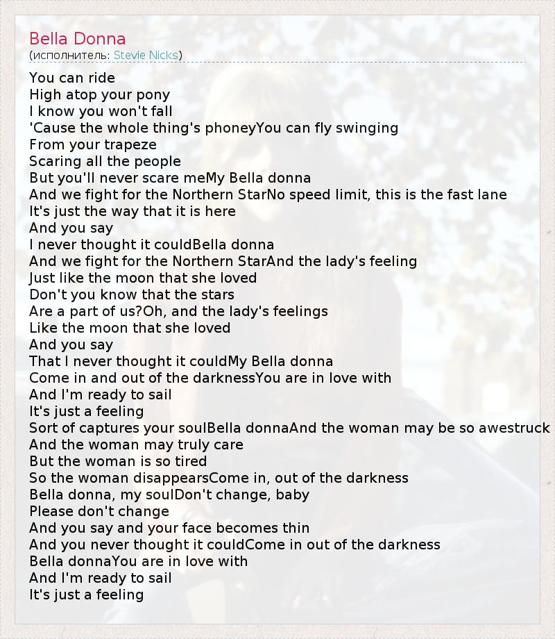 А как ты думаешь, о чем песня "Bella Donna" ?