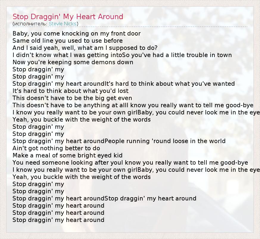 А как ты думаешь, о чем песня "Stop Draggin' My Heart Around" ?