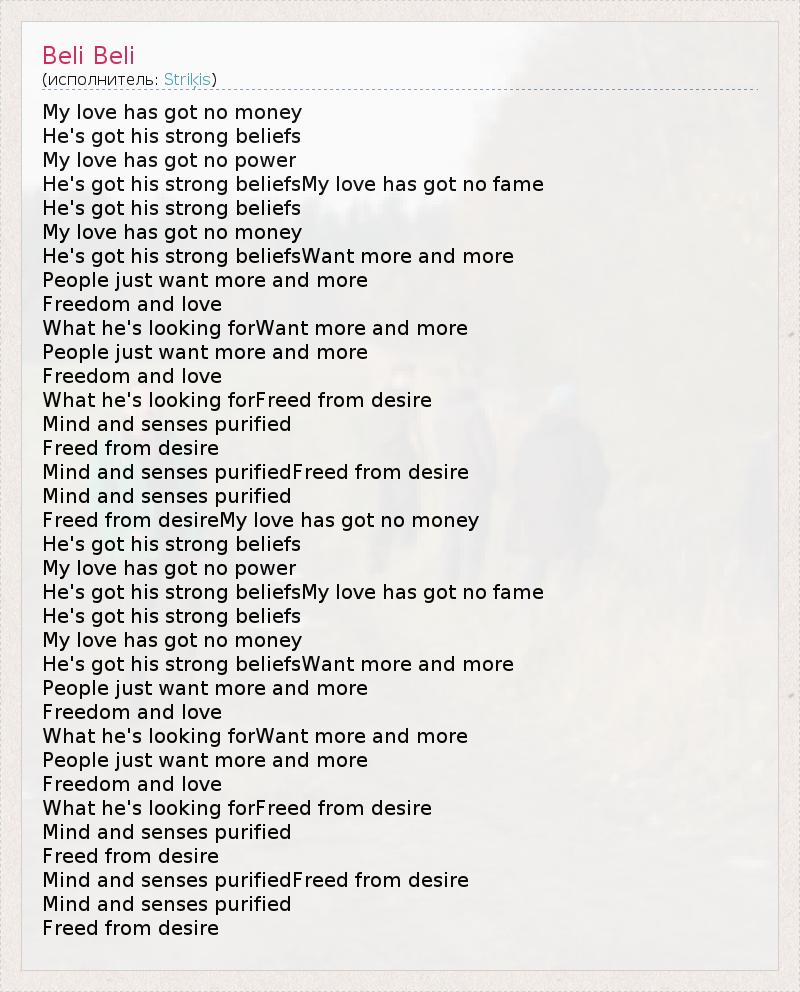 А как ты думаешь, о чем песня "Beli Beli" ?