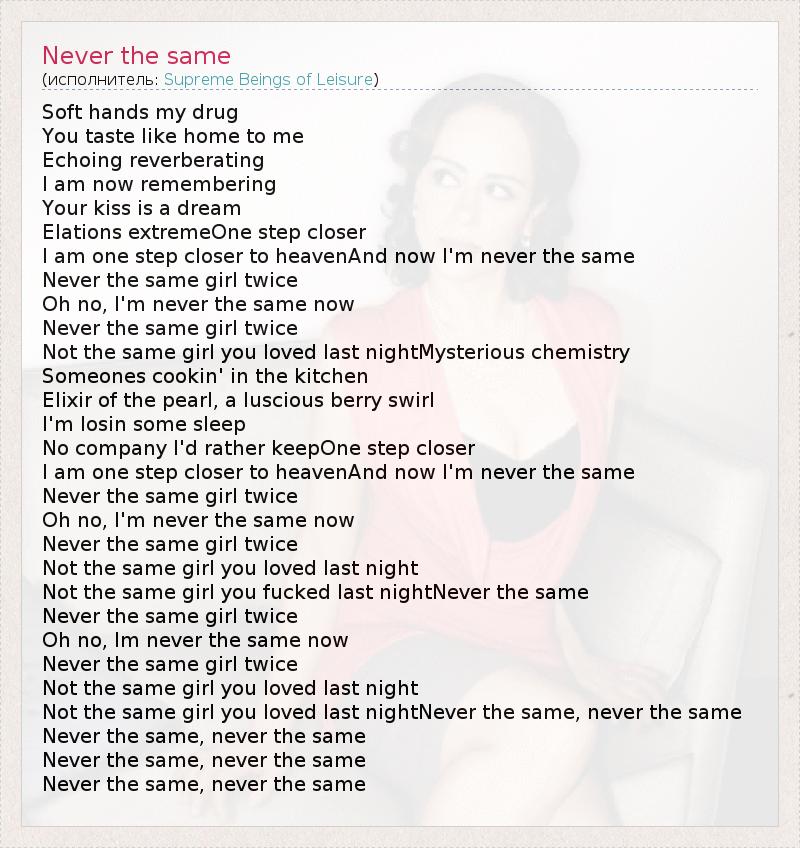 Not the same girl you loved last nightNever the same, never the same