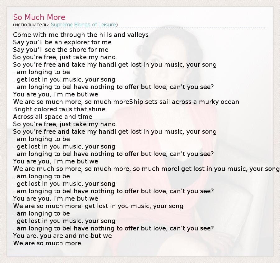 We are much so more, so much more, so much moreI get lost in you music, your song