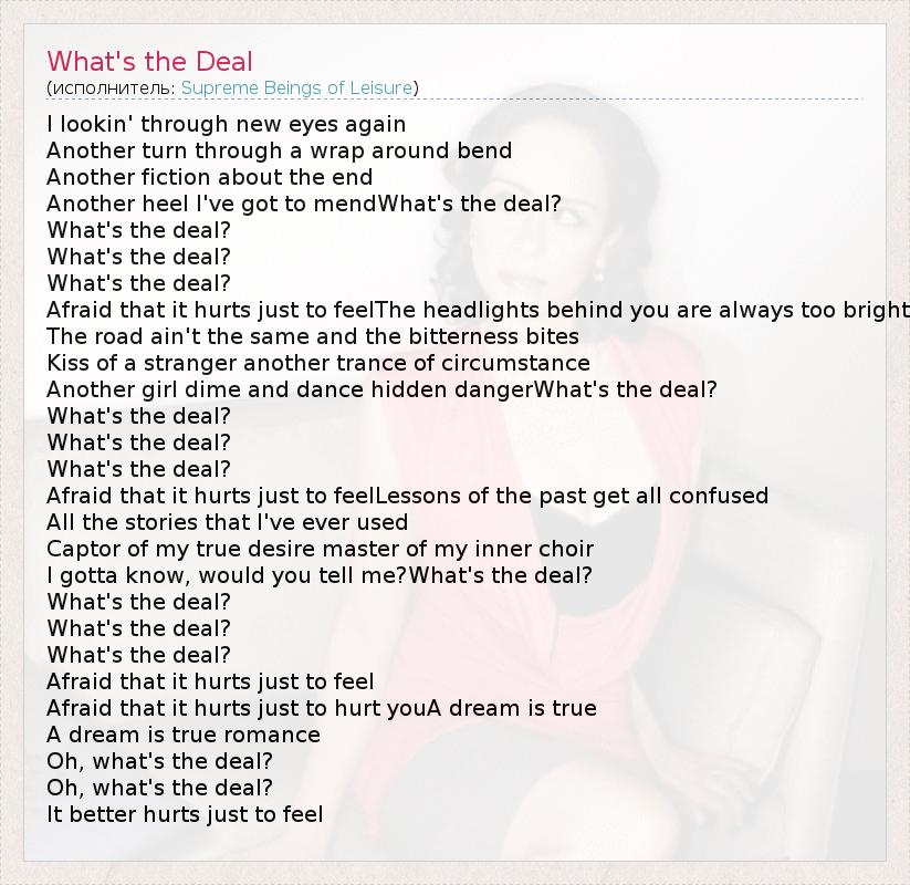 А как ты думаешь, о чем песня "What's the Deal" ?