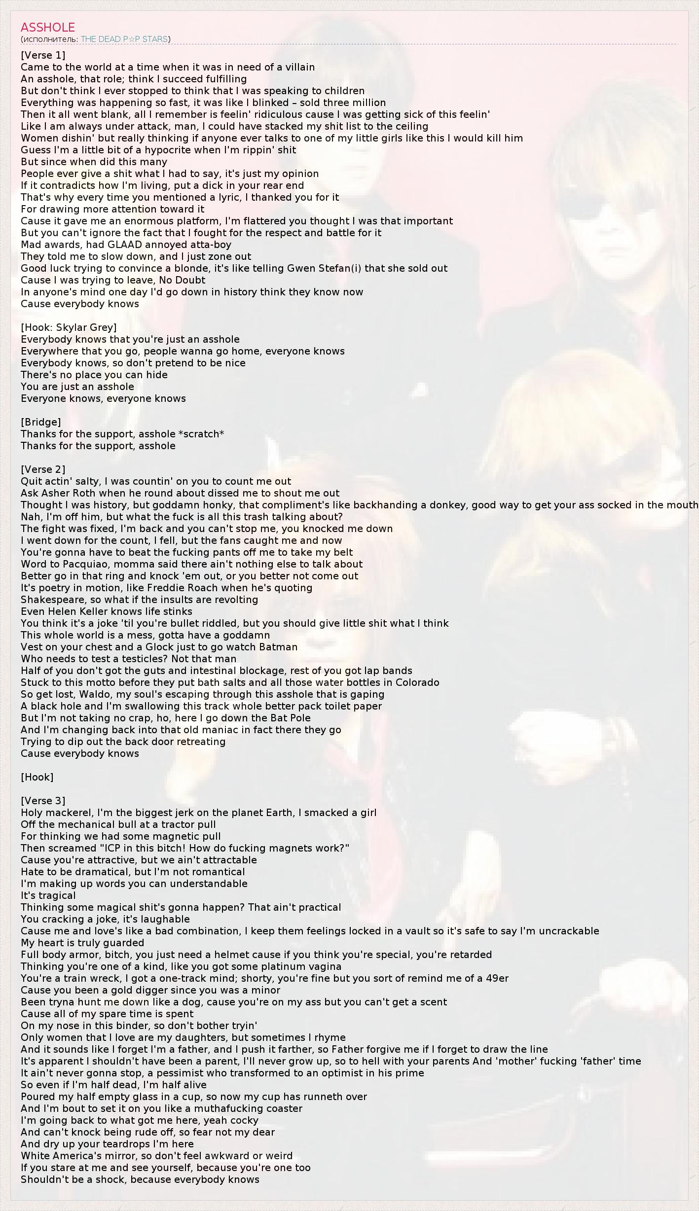 А как ты думаешь, о чем песня "ASSHOLE" ?