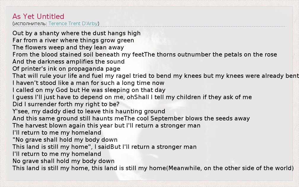 А как ты думаешь, о чем песня "As Yet Untitled" ?