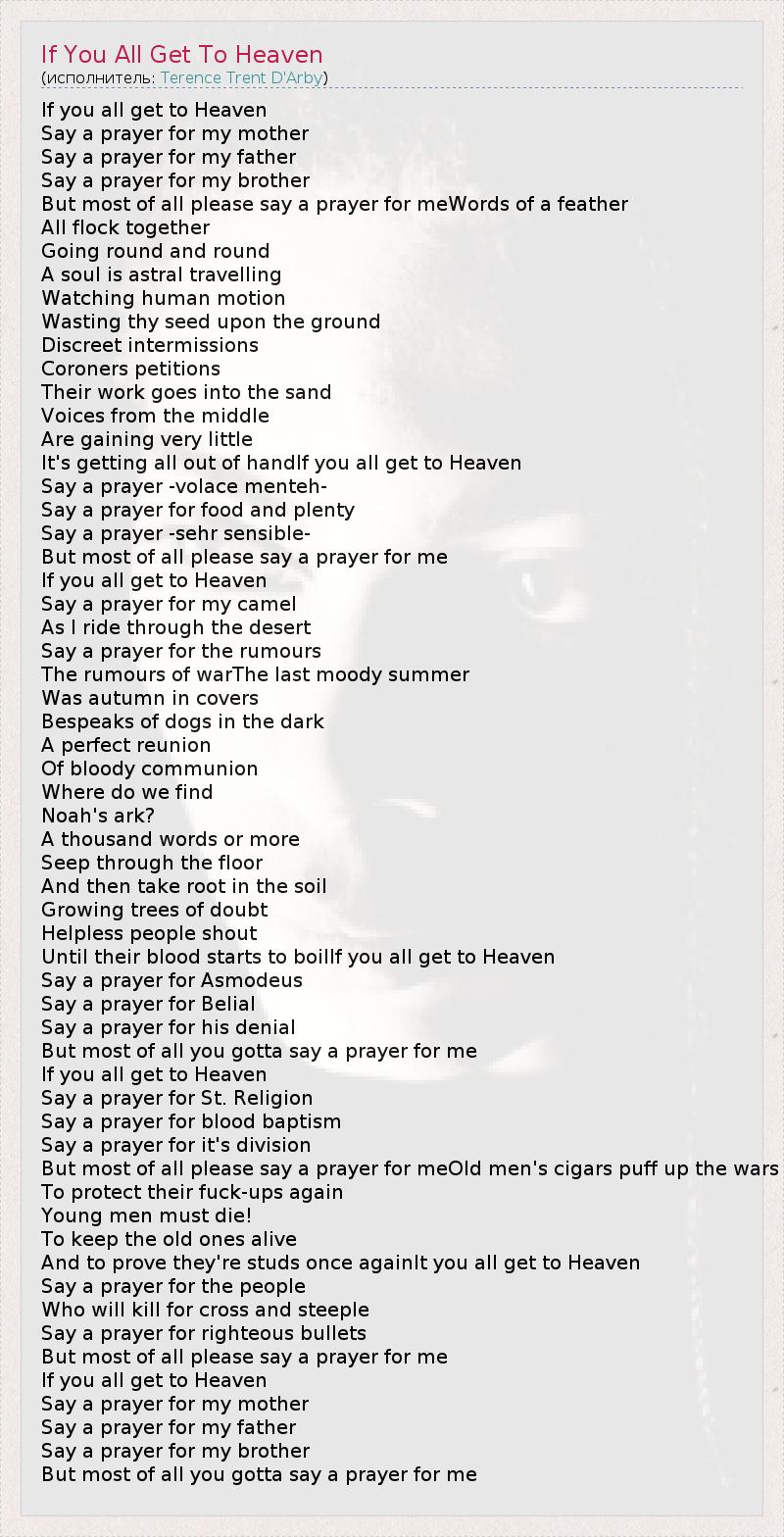А как ты думаешь, о чем песня "If You All Get To Heaven" ?