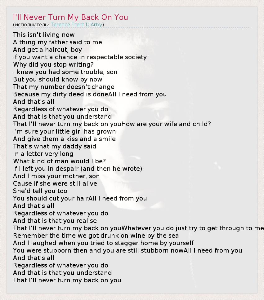 А как ты думаешь, о чем песня "I'll Never Turn My Back On You" ?