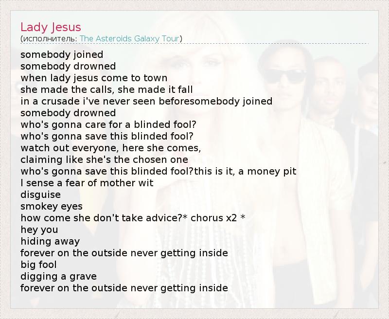 А как ты думаешь, о чем песня "Lady Jesus" ?
