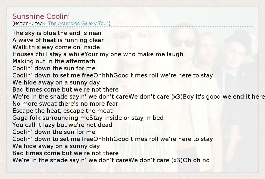 А как ты думаешь, о чем песня "Sunshine Coolin'" ?