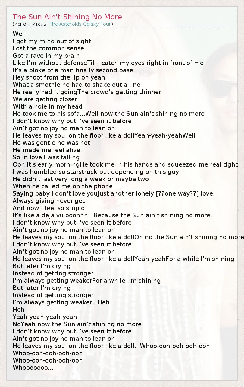 А как ты думаешь, о чем песня "The Sun Ain't Shining No More" ?