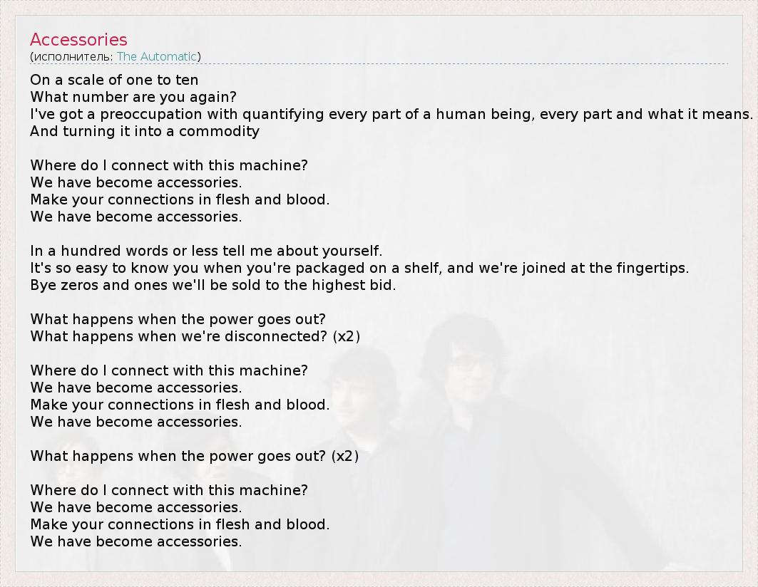 А как ты думаешь, о чем песня "Accessories" ?