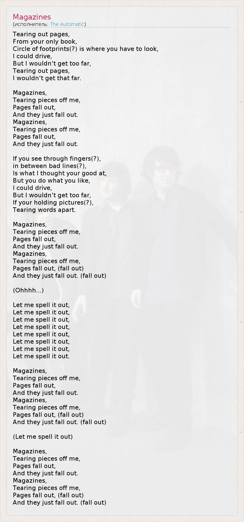 А как ты думаешь, о чем песня "Magazines" ?