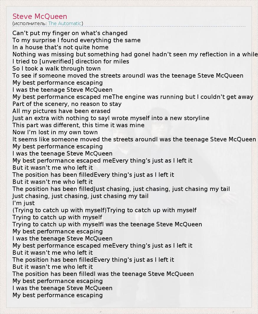 А как ты думаешь, о чем песня "Steve McQueen" ?