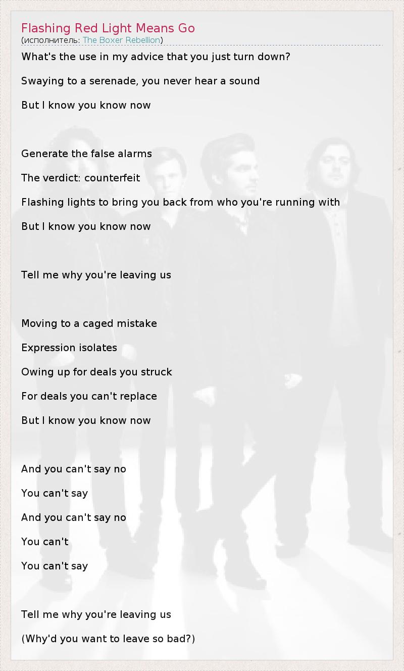 А как ты думаешь, о чем песня "Flashing Red Light Means Go" ?