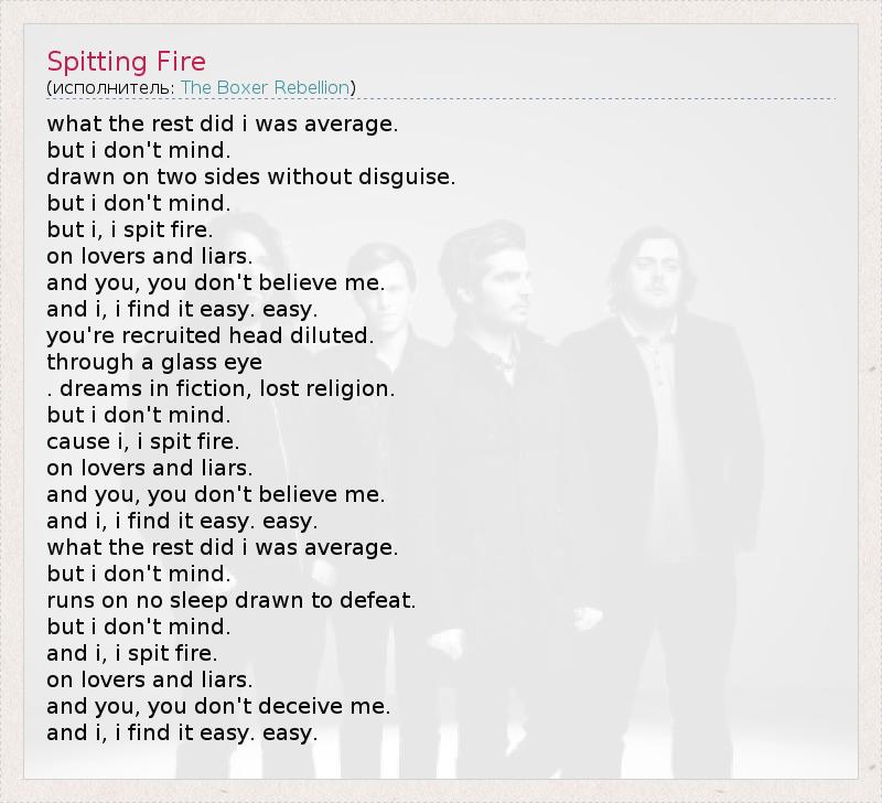А как ты думаешь, о чем песня "Spitting Fire" ?