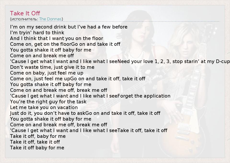 'Cause I get what I want and I like what I seeTake it off, take it off