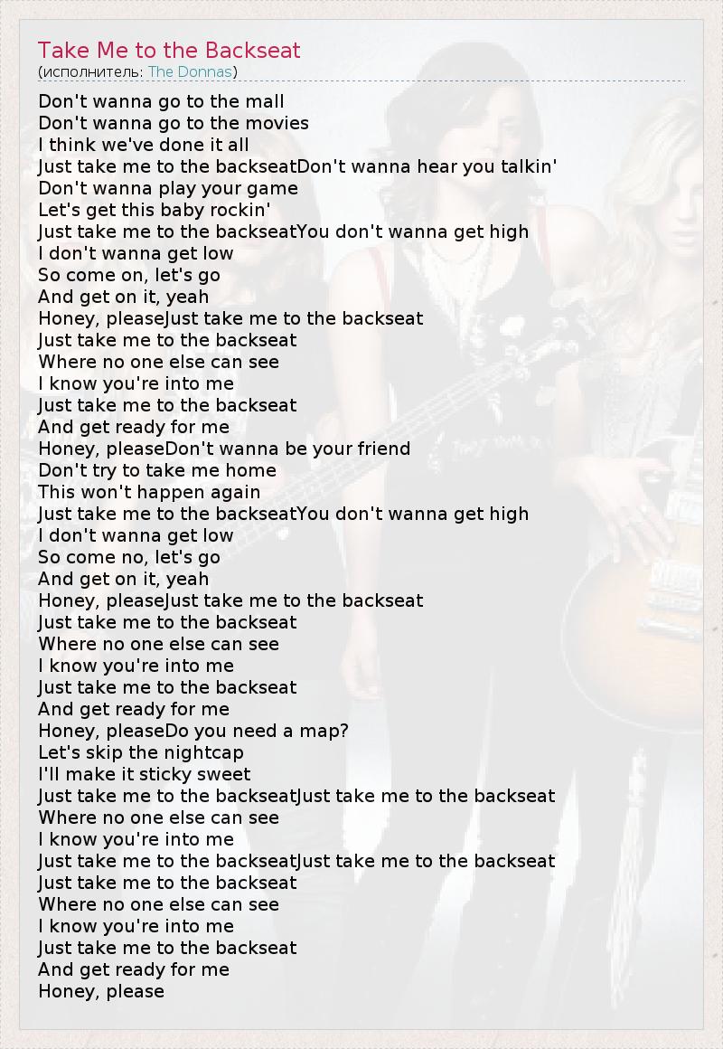 ГлавнаяИсполнителиThe DonnasTake Me to the Backseat