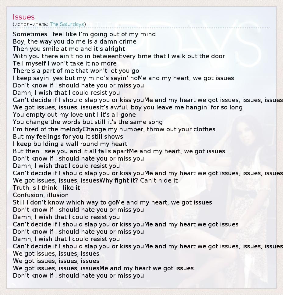 Can't decide if I should slap you or kiss youMe and my heart we got issues, issues, issues