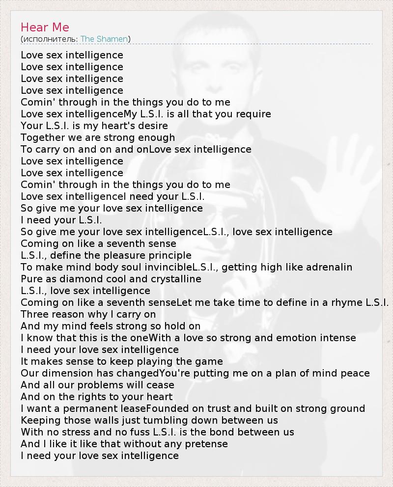 Love sex intelligenceI need your L.S.I.