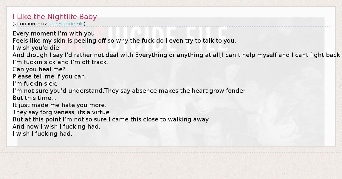 А как ты думаешь, о чем песня "I Like the Nightlife Baby" ?
