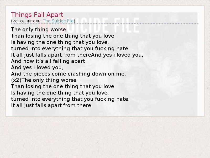 А как ты думаешь, о чем песня "Things Fall Apart" ?