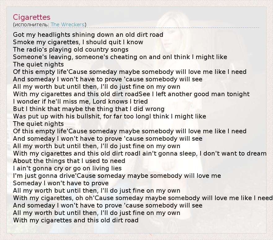 А как ты думаешь, о чем песня "Cigarettes" ?