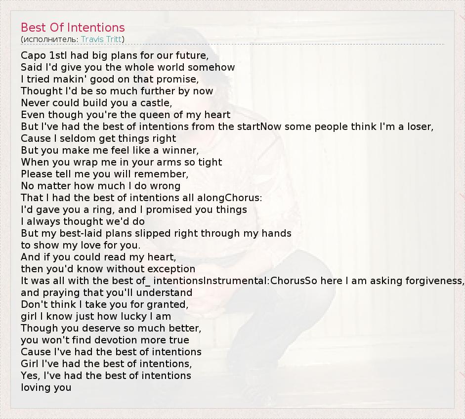 А как ты думаешь, о чем песня "Best Of Intentions" ?