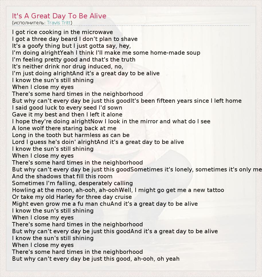 А как ты думаешь, о чем песня "It's A Great Day To Be Alive" ?