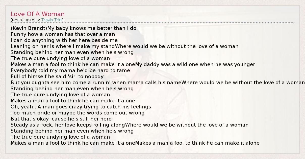 А как ты думаешь, о чем песня "Love Of A Woman" ?