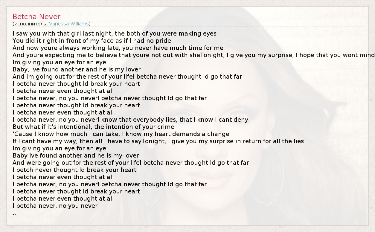 А как ты думаешь, о чем песня "Betcha Never" ?