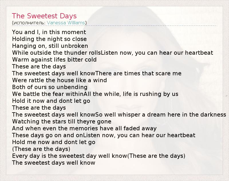 А как ты думаешь, о чем песня "The Sweetest Days" ?