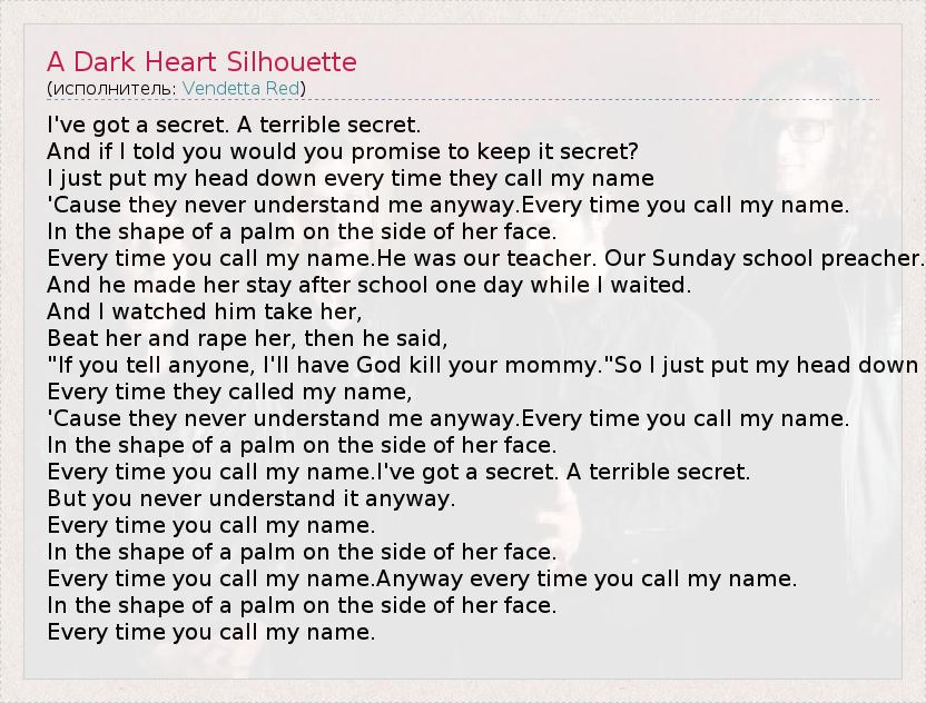 А как ты думаешь, о чем песня "A Dark Heart Silhouette" ?