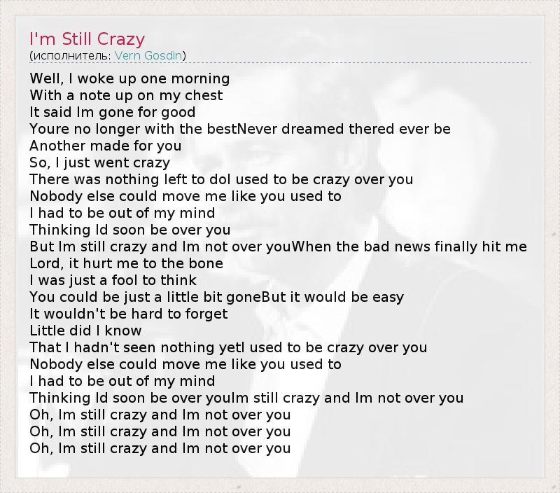 Oh, Im still crazy and Im not over you