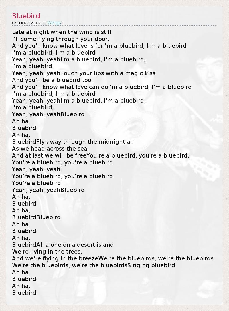 And you'll know what love is forI'm a bluebird, I'm a bluebird