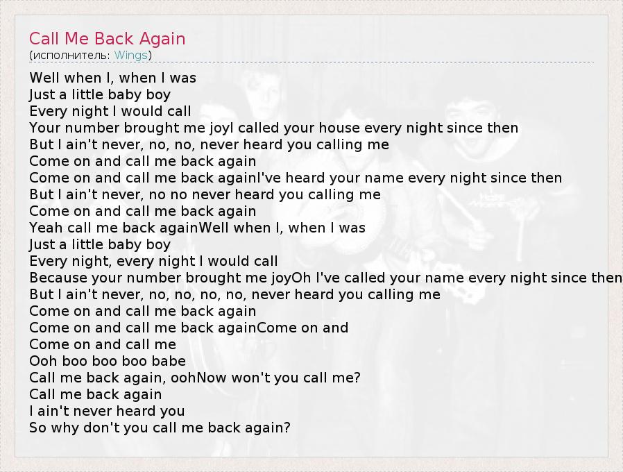 А как ты думаешь, о чем песня "Call Me Back Again" ?