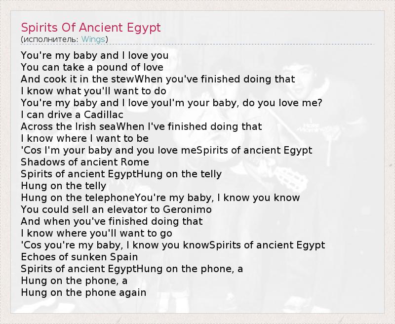 'Cos you're my baby, I know you knowSpirits of ancient Egypt